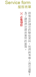 為了讓我們您提供更好的服務,請填寫詳細您的聯絡資料,我們將有專人與您連繫!
